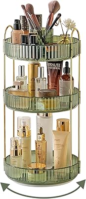 The organizer is made from robust acrylic with metal (gold-tone) support rods and green acrylic trays, so it looks decorative while resisting rust and water—useful in a bathroom environment. Assembly is straightforward and quick; the included hardware and instructions put the unit together in minutes. In practice the trays are roomy enough for daily skincare and perfume bottles, and the top holder keeps brushes upright and accessible. Compared with the CANITORON clear-lidded organizer—which prioritizes dust protection and instant visibility—this model favors open display and corner efficiency. Unlike the Vtopmart small stackable drawers (best for tiny items and labelling), the NATURE'S SOURCE handles taller products and more visual presentation. And while the MISERWE rotating tower gives 360° access, this unit trades rotation for a stable corner footprint; it’s also less compartmentalized than Readaeer’s modular organizers, which are better if you need many small slots. No product is perfect. Some buyers reported light surface scuffs on arrival and noted the top can feel a bit wobbly if overloaded—so think of this as a display-and-everyday-use piece rather than a heavy-duty shelf. Tip: place heavier items on the bottom tier, avoid piling weight on the very top, and add small non-slip pads or tighten the fittings to reduce movement. If you need dust protection or hundreds of tiny compartments, a lidded or drawer-style unit (CANITORON or Vtopmart/Readaeer) may suit better; if you want quick access from all sides, the MISERWE rotating organizer is the alternative. For most people wanting an attractive, easy-to-assemble corner solution that holds tall bottles and brushes while freeing counter space, NATURE'S SOURCE is a practical, reasonably priced option. Check price from Amazon